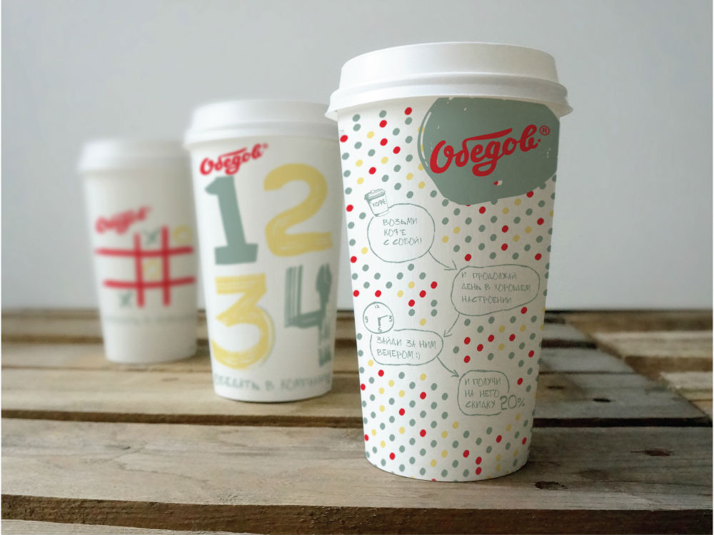 Создавая новый стиль, специалисты Brandson стремились к тому, чтобы во время обеда людей окружало как можно меньше «казёнщины». Это касается всего, что присутствует вокруг человека: шрифтов на сообщениях и в меню, цвета печатных материалов и стиля, который отсылает к немудрёным, но знакомым играм. Бренд-мейкеры намеренно выбрали такую игру, которая практически не требует реквизита, - и сделали ее визитной карточкой нового имиджа бренда «Обедов».