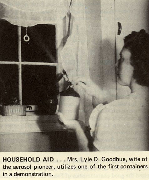 Во время этой войны американская армия, воевавшая в условиях тропиков, несла значительные потери из-за болезней, передаваемых с укусами насекомых. Нужно было найти средство для доставки и удобного распыления инсектицидов (основным из которых тогда был ДДТ) в боевых условиях. Тогда Лайл Гудхью (Lyle D. Goodhue, 1903-1981) и Уильям Салливан (William H. Sulliwan) после более чем годичных исследований и испытаний предложили использовать для этого аэрозольную тару.