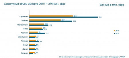 Однако из-за сложной экономической ситуации в 2014 и 2015 гг. произошло снижение инвестиционной деятельности. В 2015 г. объем импорта машин для обработки пищевых продуктов и упаковки упал на 28 процентов до 1 276 млн. евро.