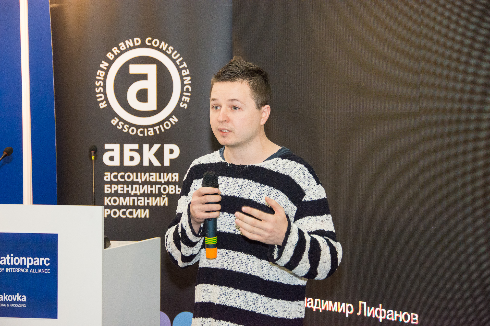 Это выступление оригинального Владимира Лифанова, креативного директора Suprematika, который всегда просит свою аудиторию сфотографироваться с ним. В чем-то он даже поспорил с предыдущими выступающими, обозначив свою позицию так: «Упаковка должна делать какие-то другие вещи, а не только продавать».