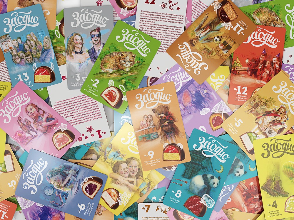«Связать всё — в этом была одна из самых сложных, но и самых интересных задач бренда. Номер, вкус конфеты, иллюстрация, история, цветовое решение упаковки, даже маленькие детали на конфетах — абсолютно все элементы создают уникальный, позитивный образ», — говорит Юлия Пальчикова. — Красота в деталях — а этих деталей так много, что трудно перечислить. Например, если приглядеться, на «Заодно №12» можно увидеть надпись “СПИСОК МЕЧТ” на лежащей на столе папке. А «Заодно №13» — SKU, которая планируется к выпуску в дальнейшем, — превращает пятницу, тринадцатое, в замечательный день вопреки суевериям. Когда смотришь на иллюстрации, читаешь эти маленькие, добрые истории, то невольно твое лицо озаряет улыбка».