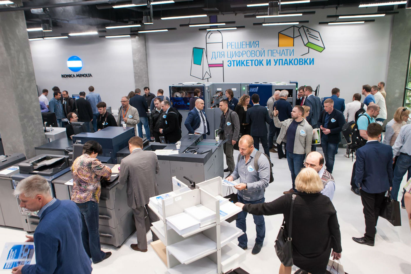 У Konica Minolta свой ответ: в новом демонстрационном зале в режиме эксплуатации стоит как уже проверенное рынком оборудование, так и новая техника. Все машины работают, и потенциальные клиенты могут испытать качество и скорость на своей продукции.