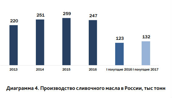 Рынок сливочного масла на момент введения эмбарго в меньшей степени был зависим от импортных поставок, и с 2014 года структура стран-поставщиков не претерпела существенных изменений. Исключением стал запрет поставок из Финляндии. Объемы производства отечественных маслоделов остаются условно стабильными.