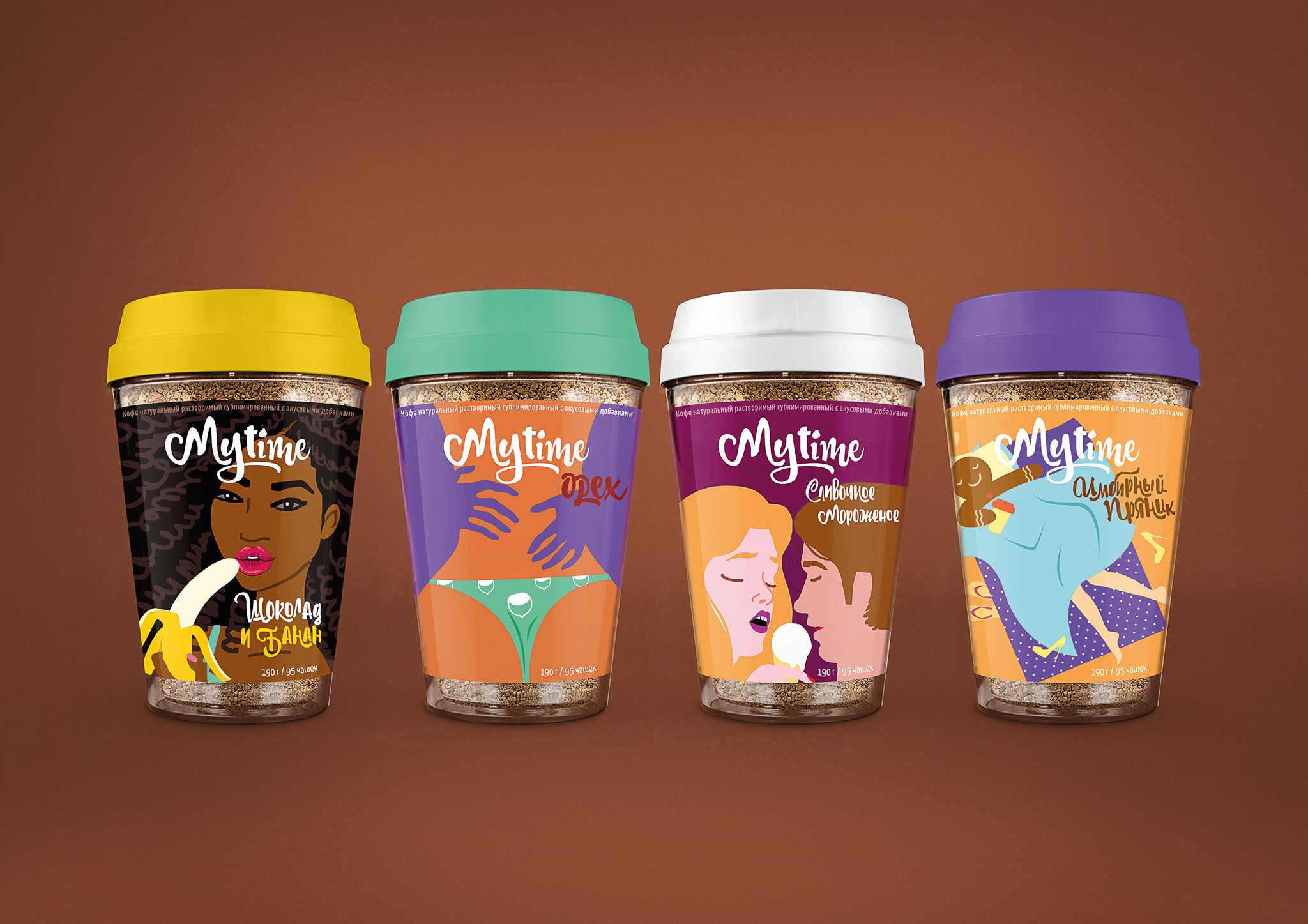 Суть и метафора бренда - связка понятий «свободные отношения» между людьми и «разнообразие вкусов» в ассортименте «MyTime». Молодые люди в поисках себя пробуют на вкус что-то новое - и в отношениях, и в выборе кофе.
