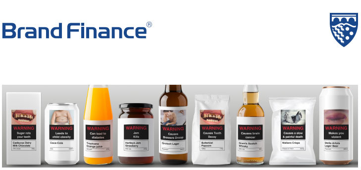 На фоне введения в некоторых странах требования об использовании обезличенной упаковки табачных изделий, а также призывов принять аналогичное законодательство в отношении других отраслей, британская компания Brand Finance проанализировала возможные финансовые последствия такой политики для брендов в четырех категориях продуктов питания и напитков: алкоголь, кондитерские изделия, острые и соленые снеки и сахаросодержащие напитки.