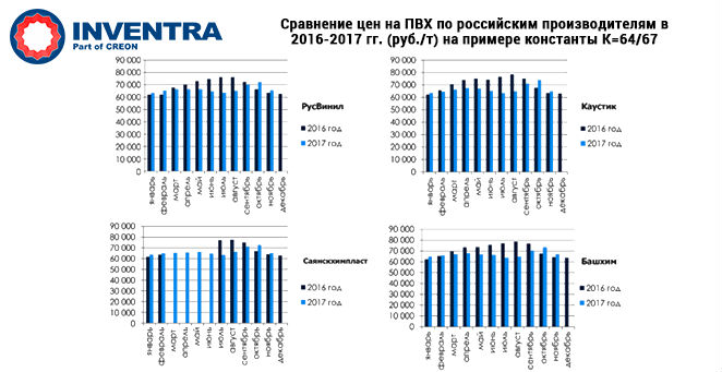 В защиту производителей ПВХ выступил директор по продажам «Саянскхимпласт» Андрей Филёв. Он обратил внимание на то, что, глядя на снижение цен в летний период в 2011 и 2013 гг. при сравнении с 2016 г., необходимо учитывать форс-мажорный простой «Саянскхимпласта», а также настоял на необходимости сравнения курсов в рублевом и долларовом эквивалентах, ведь график в таком случае будет иной. Начальник отдела продаж эмульсионного и суспензионного ПВХ «РусВинил» Мария Бурова озвучила мнение, что ситуация на рынке достаточно стабильная, и время покажет, что будет дальше. Решающим фактором может стать то, что в 2018 г. можно ожидать небольшого роста потребления ПВХ. Директор департамента полимеров «Башхим» Валентина Сканцева прогнозирует на 2018 г. небольшой рост (1-2%) российского потребления по суспензионной смоле, а планируемая загрузка мощностей предприятия останется на стабильном уровне, равном 100%.