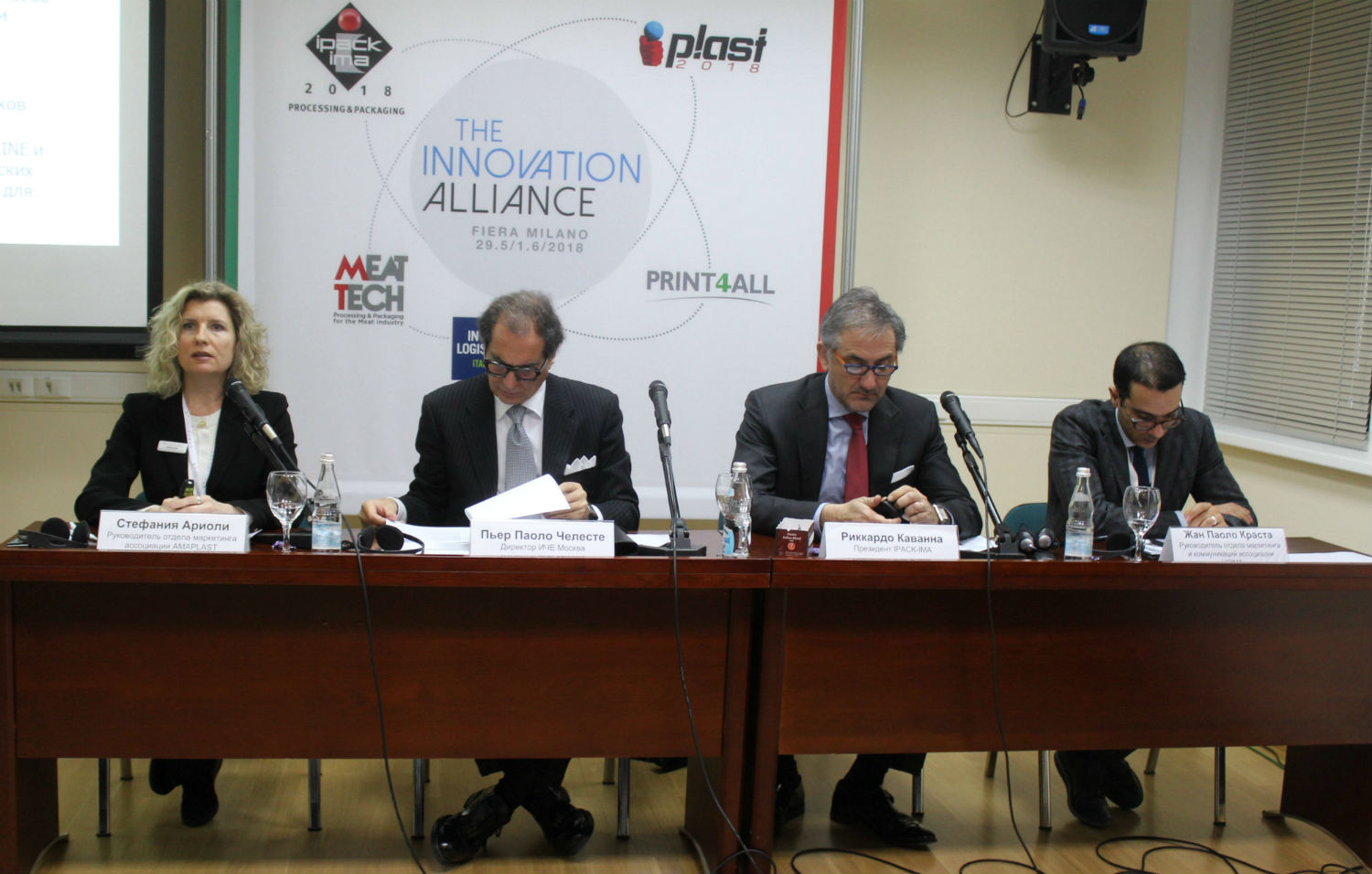 24 января 2018 г. в рамках международной выставки upakovka-2018 состоялась пресс-конференция, организованная итальянским Агентством по продвижению внешнеэкономической деятельности итальянских компаний (ИЧЕ), аккредитованным в России как Отдел по развитию торгового обмена посольства Италии в Москве, совместно с Ассоциацией производителей оборудования и пресс-форм для пластмасс и резины Amaplast и Союзом итальянских производителей упаковочного оборудования UCIMA. Мероприятие было посвящено новому выставочному проекту The Innovation Alliance.