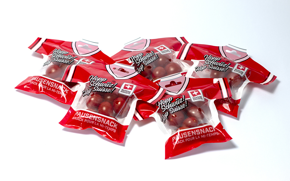 К первенству мира по футболу FIFA 2018 две крупные швейцарские компании, занимающиеся торговлей овощами, выпустили на рынок томаты для снеков в необычной упаковке SchurStar в виде футболки в цветах национальной сборной Швейцарии. Упаковка изготовлена немецкой компанией SchurStar Systems GmbH.