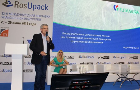 О биоразлагаемых целлюлозных плёнках как практической реализации принципов экономики замкнутого цикла рассказал Аднжей Корнацкий (Andrzej Kornacki), региональный менеджер по продажам компании Futamura (Япония) на конференции «Современная полимерная упаковка – реалии производителя и потребителя», которая прошла в рамках деловой программы отраслевой выставки RosUpack 2018.