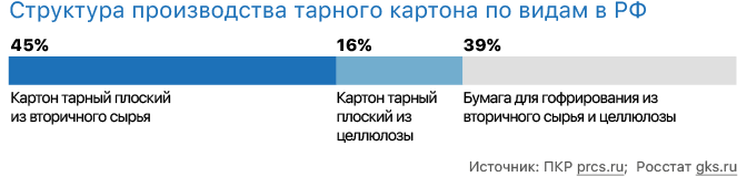 В структуре производства по видам продукции более 60% приходится на картон для плоских слоев гофрокартона, остальной объем – на бумагу для гофрирования.