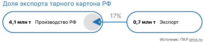 В 2017 году около 17% от выпущенного в России тарного картона – 710,6 тыс. тонн - было поставлено на экспорт, при этом основной объем поставок приходится на целлюлозные картоны.