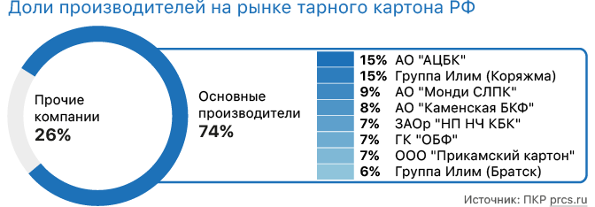 В целом для рынка тарных картонов России характерна значительная концентрация производственных мощностей в холдингах.