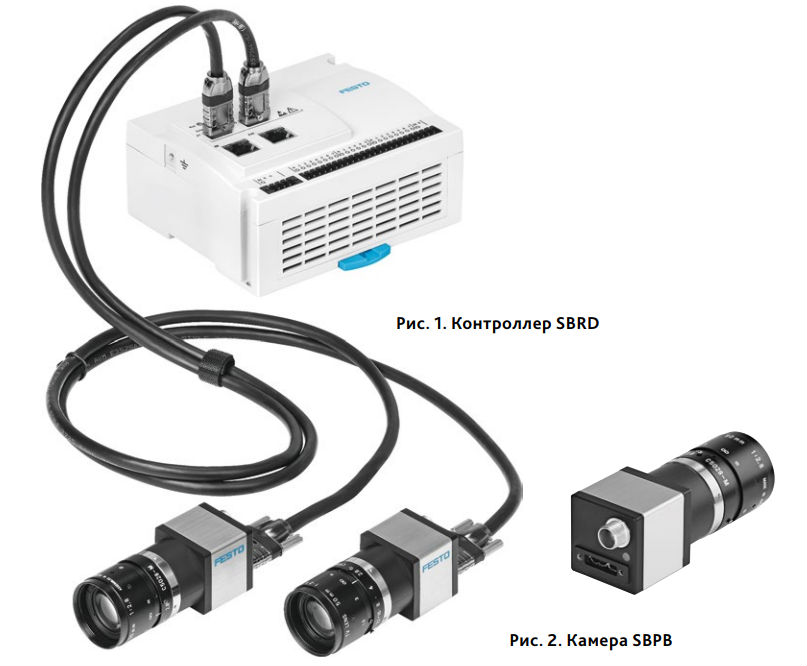 Главным элементом системы является контроллер, на базе которого обрабатываются принятые от камеры снимки. В отличие от видеодатчиков Festo семейства SBSx во встроенной обработкой система технического зрения SBRD-Q оснащена внешним контроллером, который устанавливают в шкафу управления (ШУ). Камера SBPB крепится непосредственно в зоне анализа исследуемого объекта и соединяется с контроллером SBRD кабелем USB 3.0.