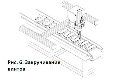 - Согласование работы электромеханической системы линейных перемещений для установки и закручивания крепежных винтов в корпус детали (рис.6).