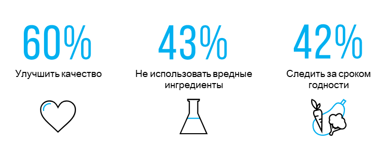 Покупатели по-прежнему отмечают, что стали бы покупать частные марки более активно при условии улучшения их качества (60%), отсутствия вредных ингредиентов (43%) и просроченных продуктов (42%).