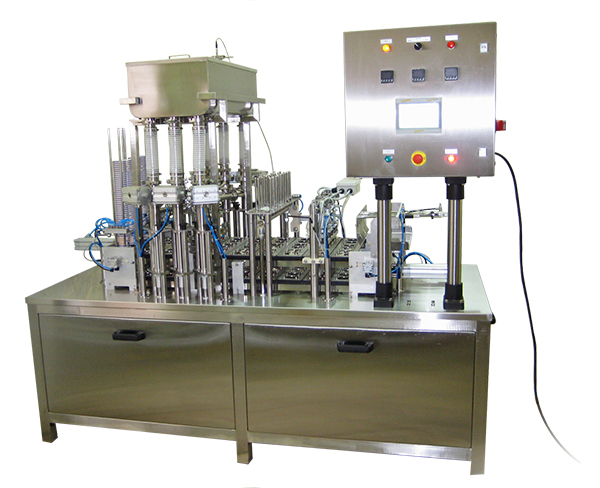 - линейные и роторные автоматы для фасовки в пластиковую тару (стаканы, лотки, ведра) с производительностью от 20 до 120 упаковок в минуту. Автоматы способны фасовать пастообразные продукты (кисломолочные продукты, масложировую продукцию, хумус с различными добавками, плавленые сыры и пр.), сыпучие продукты (картофельные хлопья с добавлением сухариков, каши с добавлением фруктов и т.п.);