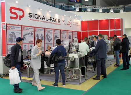 Учло тематику и предприятие «Сигнал-Пак», сделав на своем стенде «упор» именно на технологическое оборудование. Тут демонстрировались три пельменных аппарата и устройство для разрезания сосисок. Из упаковочной техники присутствовал один комбинационный дозатор СП-10-С, предназначенный для дозирования замороженных продуктов. Он оснащен системой принудительного нагнетания продукта в емкости (шнеком). Производительность – до 60 доз/мин.