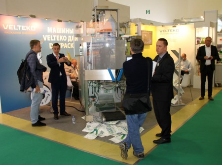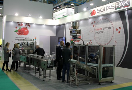 Ну, а 1-й павильон был отдан в основном тому, что относится к упаковыванию пищевой продукции. Правда, заметная часть упаковочных экспонентов вышла за «отведенные им рамки», разместив свои стенды в других павильонах. Произошло это по разным причинам. Кто-то целенаправленно устроился ближе к месту размещения техники другого назначения. Например, компания «Русская Трапеза», в последние годы много работающая по выпуску оборудования для бестарного хранения муки, устроила стенд во 2-м зале 8-го павильона, ближе к технике для хлебопечения. Кто-то, участвуя в работе многочисленных коллективных, в т. ч. национальных, стендов, оказался там, где было отведено им место. Участию компаний, связанных с производством и поставками упаковочного оборудования в соответствии с тематикой портала и интересами автора и будет посвящена бόльшая часть данного отчета.