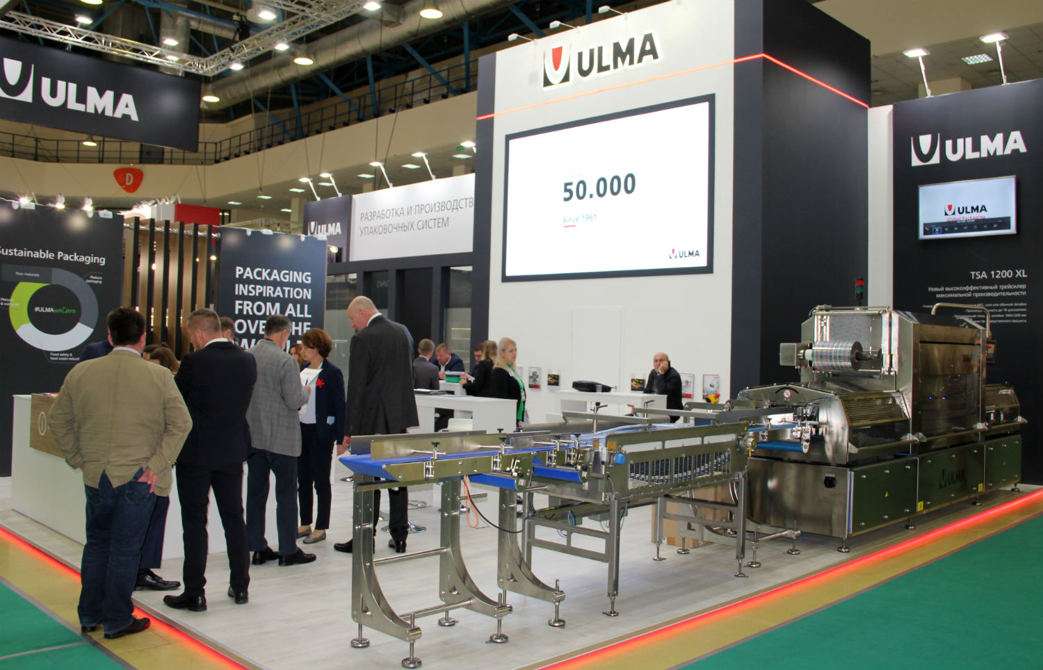 Количеством и качеством образцов порадовала международная компания Ulma (центр в Испании), имевшая два крупных и хорошо укомплектованных экспонатами стенда: в 1-м и 2-м павильонах. Экспонаты не могли не вызвать внимания и уважения. На стенде в 1 павильоне демонстрировался автоматический трейсилер (запайщик лотков с применением при упаковывании газов) модели TSA 1200 XL. Производительность – до 20 циклов в минуту. Вызывают уважение максимально возможные размеры запаиваемых лотков: 500×1200 мм.