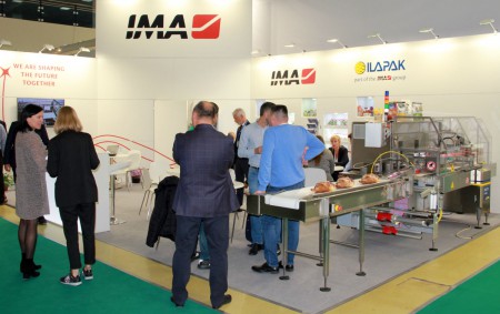 Машину «флоупак» для упаковывания в МГА модели Delta представила и компания Ilapak (Швейцария-Италия). Эту машину мы уже видели. Здесь же интересно было то, что стояла она на стенде итальянской группы IMA. На вопрос, с чем это связано, ответили: что один из старейших производителей машин «флоупак» вошел в эту группу.