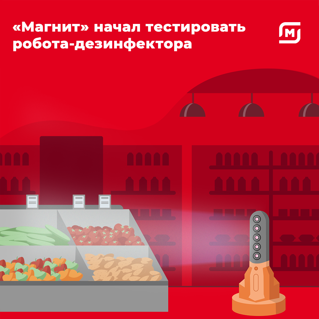 «В условиях пандемии и ограничительных мероприятий в связи с ковидом – робот-дезинфектор представляет собой эффективную альтернативу классической дезинфекции помещений. Он позволяет делать эту работу автономно и безопасно для жизни и здоровья покупателей и сотрудников. При этом значительно упрощается процесс обработки, сокращаются трудовые затраты, повышается качество дезинфекции и сокращаются операционные затраты. Протестированный нами прототип способен обрабатывать не только магазины, но и более масштабные помещения, в частности, распределительные центры. После доработки мы планируем провести еще несколько тестов и примем решение о масштабировании проекта», – прокомментировал директор по инновациям сети «Магнит» Евгений Джамалов.