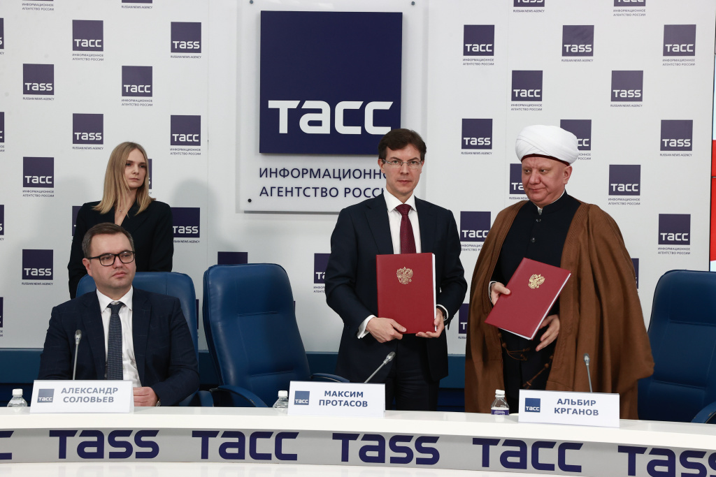 Руководитель Роскачества Максим Протасов и муфтий, глава Духовного собрания мусульман России (ДСМР) Альбир Крганов подписали соглашение о сотрудничестве с целью повышения качества отечественной продукции и услуг халяль, их стандартизации, сертификации и продвижения на внутреннем и внешнем рынках. Церемония подписания состоялась в рамках пресс-конференции ТАСС в Москве.