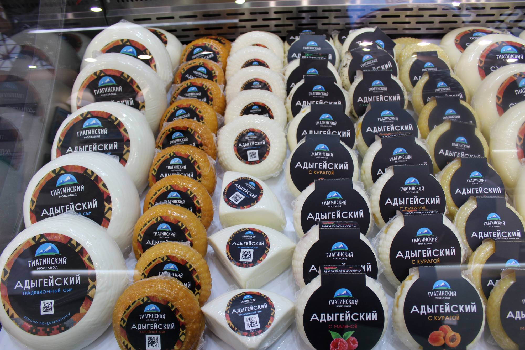 С каждым годом замечаю все новые бренды сырной продукции, новых производителей. В павильоне можно увидеть сырную продукцию самых разных российских регионов. На большом стенде Гиагинского молзавода из Республики Адыгеи представлены в изобилии разные упаковки адыгейского сыра, сыров «косичка», чечил, пачки сливочного масла и пр. Кстати, официально называться «адыгейским» может только сыр, произведённый в Республике Адыгеи. У адыгейцев старинные традиции изготовления сыров. Даже в пословицах этого народа упоминаются сырные технологии. Так, адыгейцы говорят: Къуаер ц1ынэу афызы, пшъашъэр фызы гьэу агъасэ (Сыр сжимают в сыром виде, девушку воспитывают строго с детства).