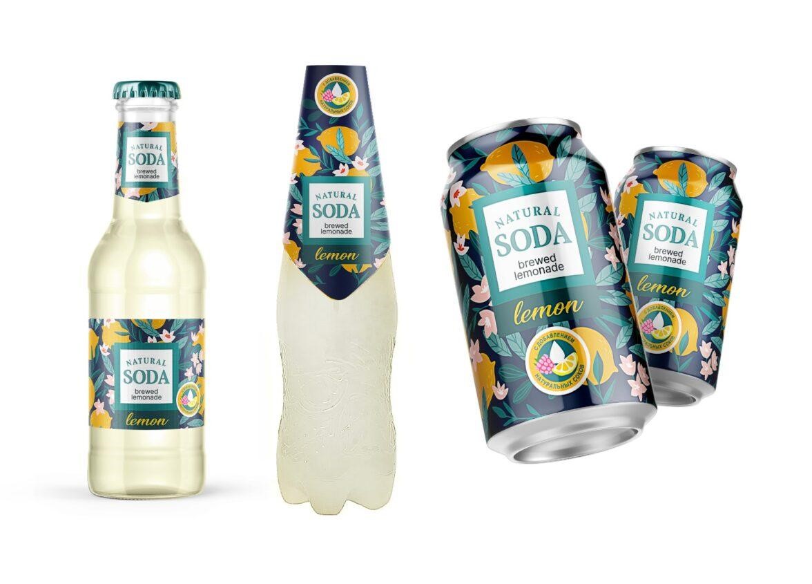 Для «Natural Bubble» — смешанный стиль крафтового и природного дизайна. А для «Soda-Boom» была использована свободная стилистика, где и был внедрен персонаж-лимончик.