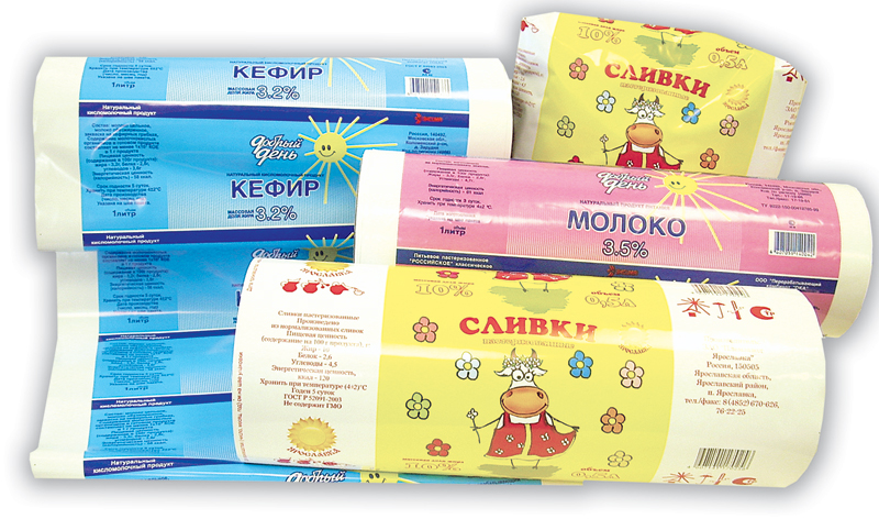В такой упаковке молоко может храниться до 120 ч, в то время как в упаковке из однослойной пленки оно хранится только 36 ч. Полиэтиленовая пленка используется в качестве упаковки для молока, кефира, сметаны, ряженки, йогурта и других молочных продуктов. Производители упаковочных материалов, в том числе и компания «Артпласт», постоянно совершенствуют барьерные свойства производимых пленок. Так, современная пленка, благодаря специальным добавкам, служит хорошим барьером для света, а высокая прочность на растяжение и разрыв и отличное скольжение позволяют использовать такие пленки на высоких скоростях фасования. Толщина молочной пленки, произведенной на современных экструдерах, может составлять от 60 до 110 мкм.