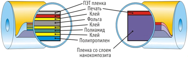 Comparison of traditional flexible packaging with packaging based on a nanocomposite