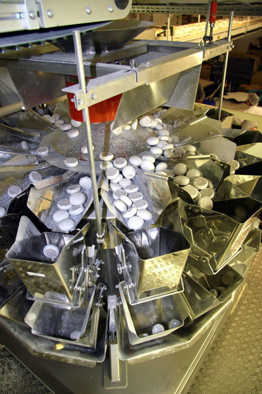 Это позволило использовать и без того компактный 14-ти головочный , модифицированный для подачи доз через специальные, изготовленные на заказ воронки, напрямую в упаковщик.