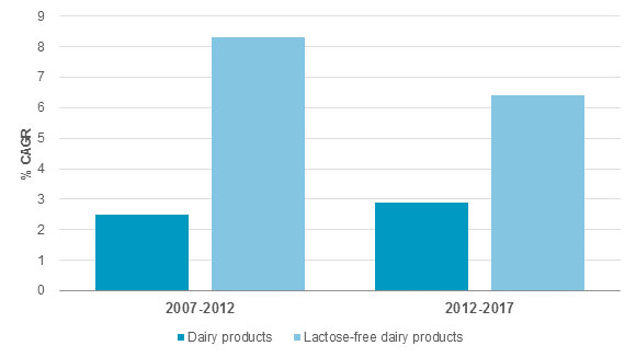 Growth of lactose-free dairy products outstrips growth of dairy products globally in volume terms