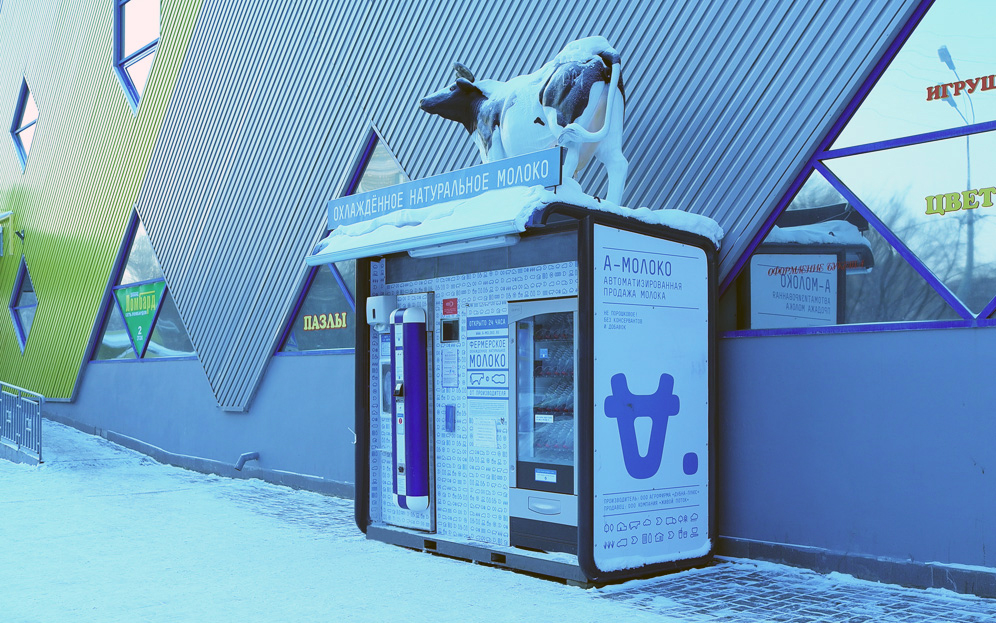 Помимо молока «Дубна+» продает через вендинговые машины творог и сметану под брендом «А-Молоко». Такие автоматы располагаются рядом с молокоматами.