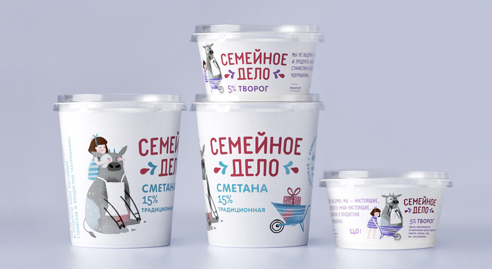 Creating a package for farm products is always an interesting task. Especially for such customer as "Cheburashkin Brothers. Family Farm". The owners of this enterprise are known for their sophisticated taste and exacting attitude to the design of their products. Vladislav and Stanislav Cheburashkin came to Depot WPF agency with a new brand "Family business", under which it is planned to produce several popular positions of the dairy assortment.