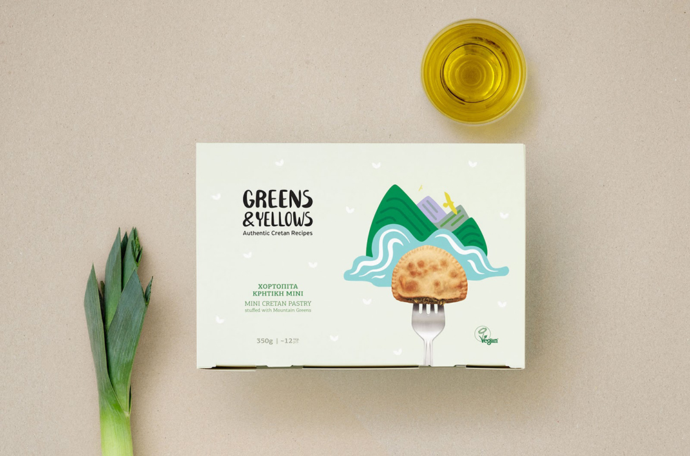 Датское отделение студии Lazy snail Design разработало дизайн упаковки для замороженной веганской продукции Greens and Yellows. Эти продукты произведены на Крите и предназначены для продажи во всем мире.