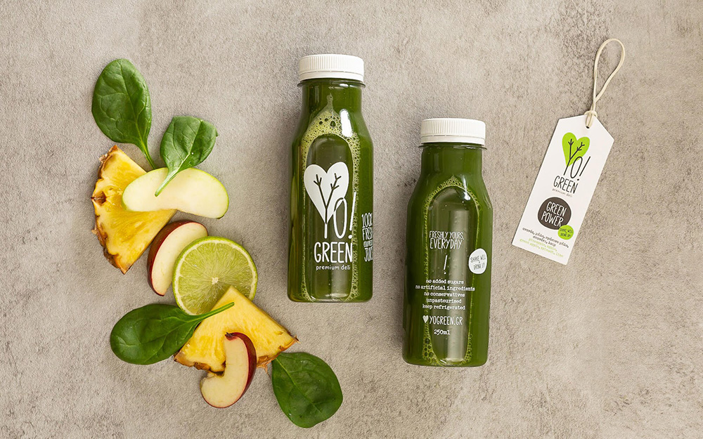 Первым примером баланса является название, где Yo! отвечает за эмоции, а Green – за натуральность и полезность. Дальше идет логотип. В нем буква Y – это ствол и ветки дерева, а крона образует сердце.