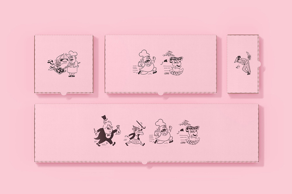 Mano Pizza выпускается разных размеров: от 12,5 до 100 см. В норвежской студии Goods придумали и нарисовали персонажей и иллюстрации для каждой коробки. По-итальянски эмоциональные и самобытные персонажи бренда вовлекают покупателя в мир Mano Pizza.