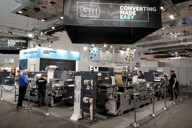 На стенде GM демонстрировалась конвертинговая линия DC350, оснащенная лазерной системой компании Luxinar. Предлагаемые этой фирмой герметичные индустриальные лазеры CO2, чья мощность может варьироваться от 5 до 1000 Вт, могут использоваться для решения самого широкого спектра задач, включая сложную контурную резку, перфорацию, гравировку, маркировку. Весьма широк и спектр обрабатываемых ими материалов, в числе которых бумага, резина, пластик, акрил, стекло, фольга, полимерные пленки, дерево, керамика.
